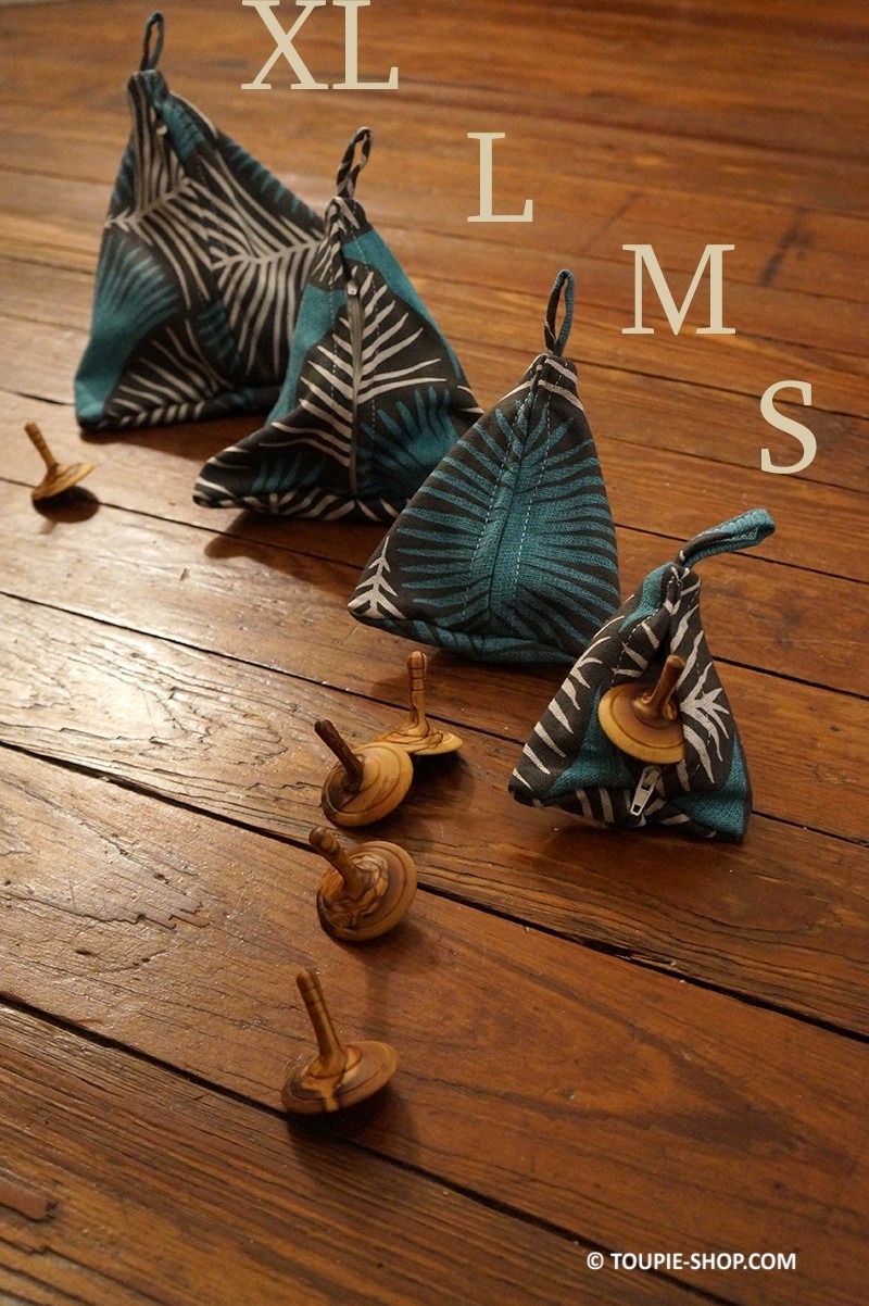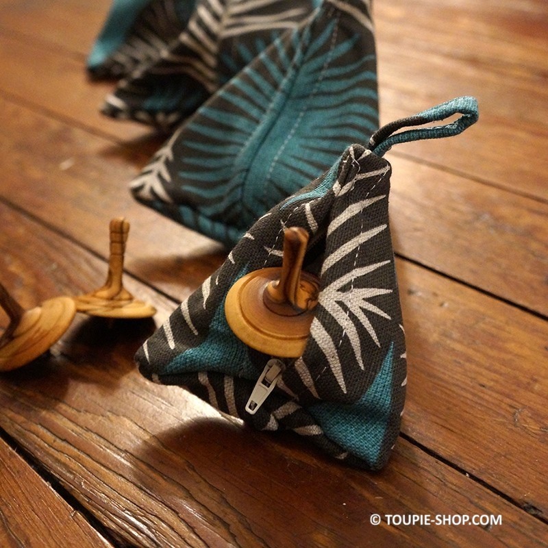 Aux finitions soignées, tissu doublé, boucle d’accroche et fermeture éclair, ces pochettes en tissu pour toupies sont fabriquées en France, made in Nantes à partir de chutes de tissu servant à la fabrication d’assises de chaises !