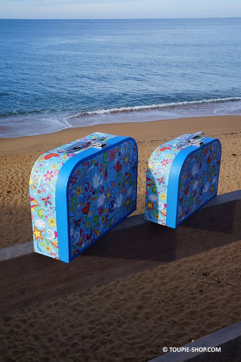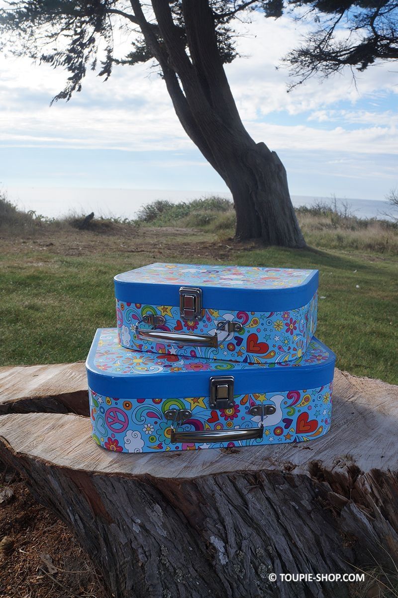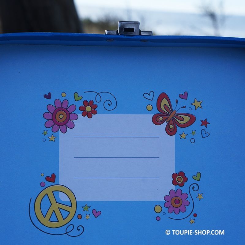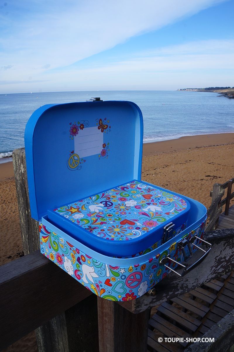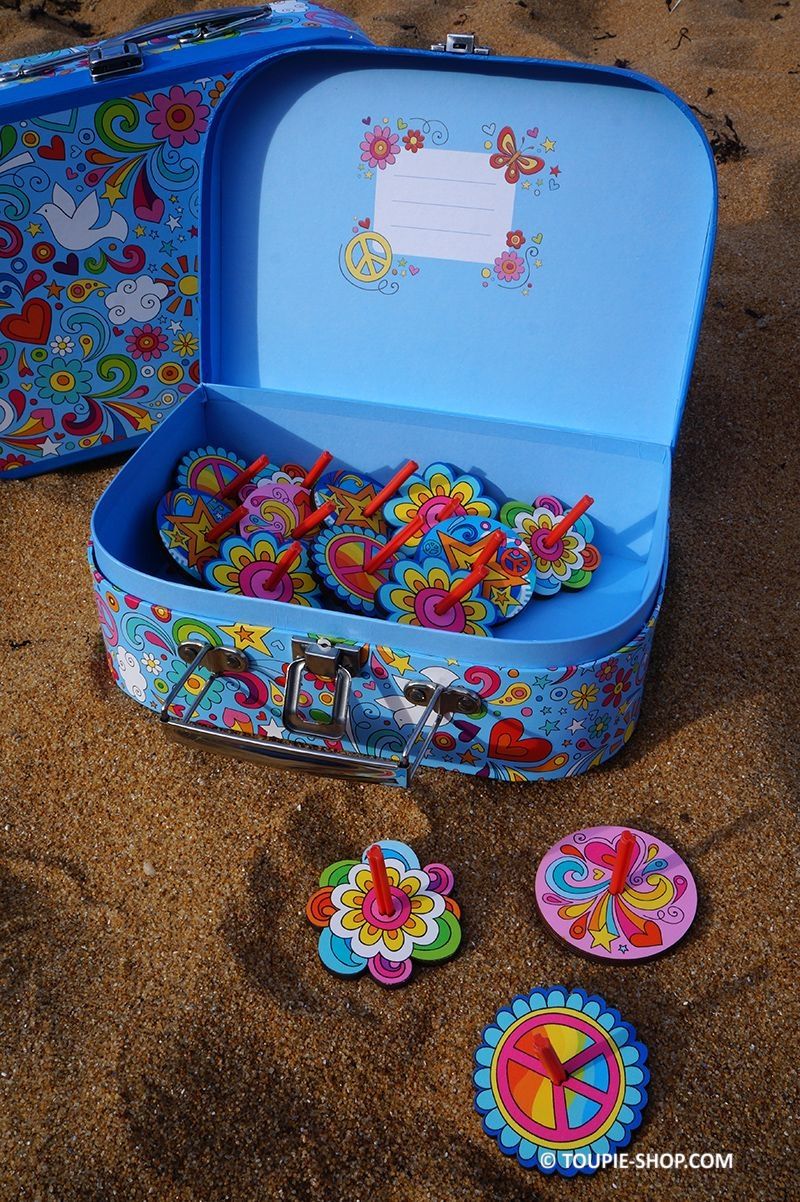 L’intérieur des boîtes de rangement en carton est bleu avec une étiquette personnalisable. Ces valises Peace and Love vous arriveront prêtes à l'emploi (sans toupie). Si vous souhaitez acheter les toupies en bois Peace and Love, c’est par ici : jeux de toupie pour enfant aux couleurs Peace and Love, découvrez aussi la grande toupie en métal peace and love cadeau enfant.