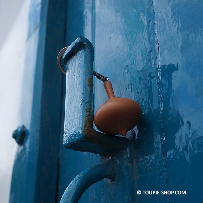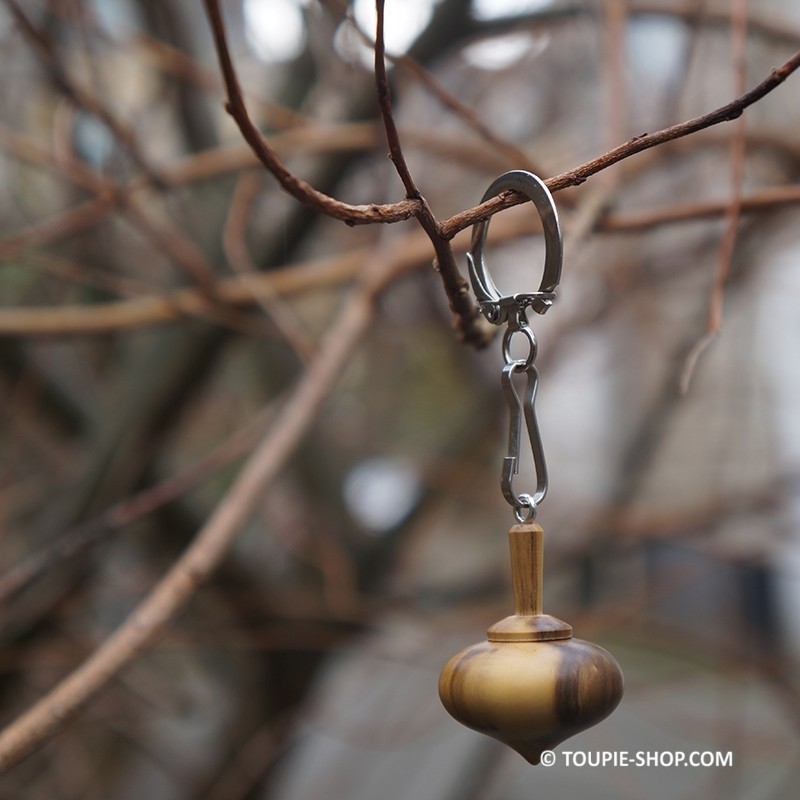 Objet pratique et jouet fabriqué en France tourné en Bretagne, ce porte-clés métal toupie bois vous accompagnera partout.