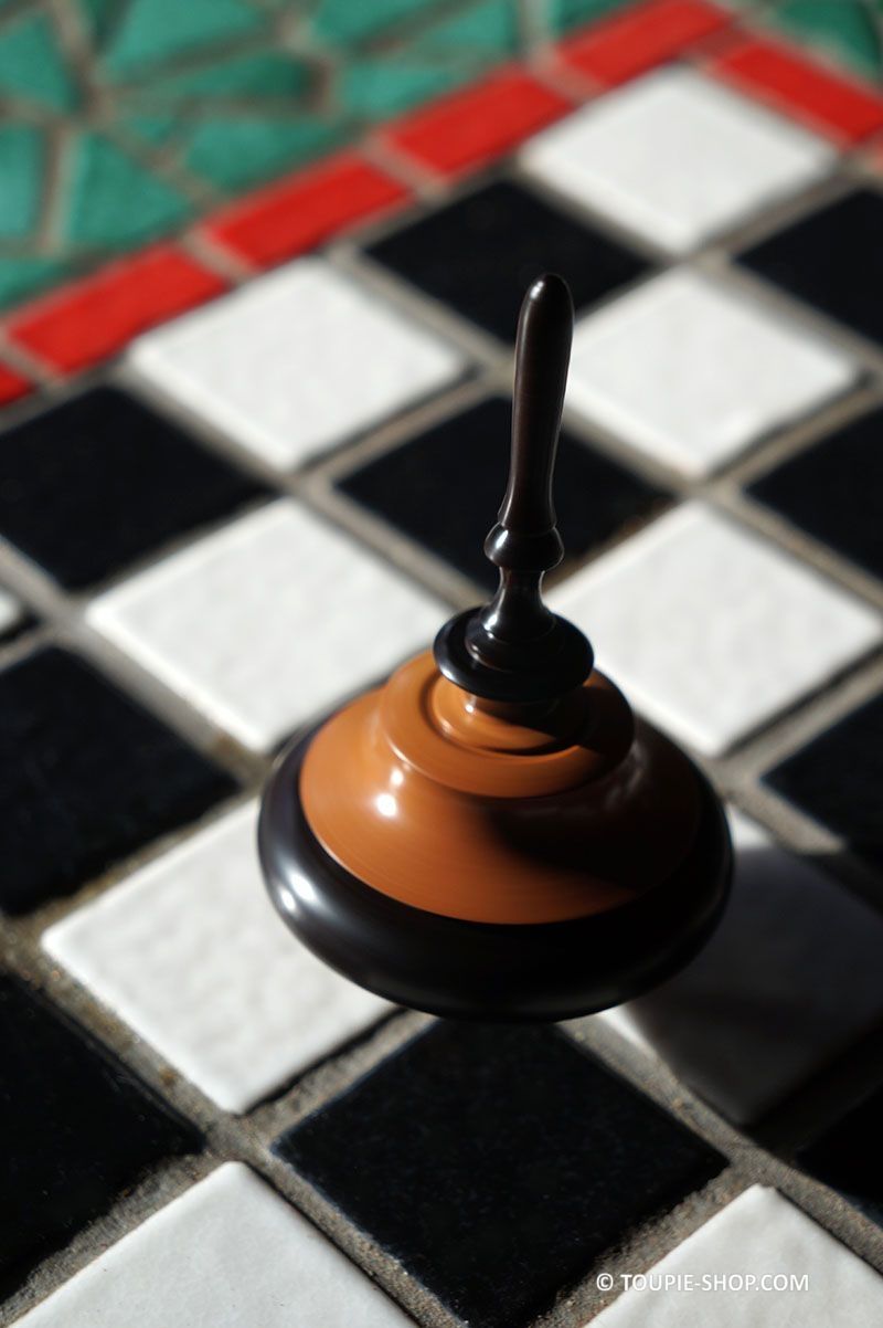 A L'ARRÊT : Classe, précieuse, la toupie Capitaine met en valeur 2 magnifiques essences de bois : l’Ebène, bois noir et le Prunier aux différentes nuances caramel.