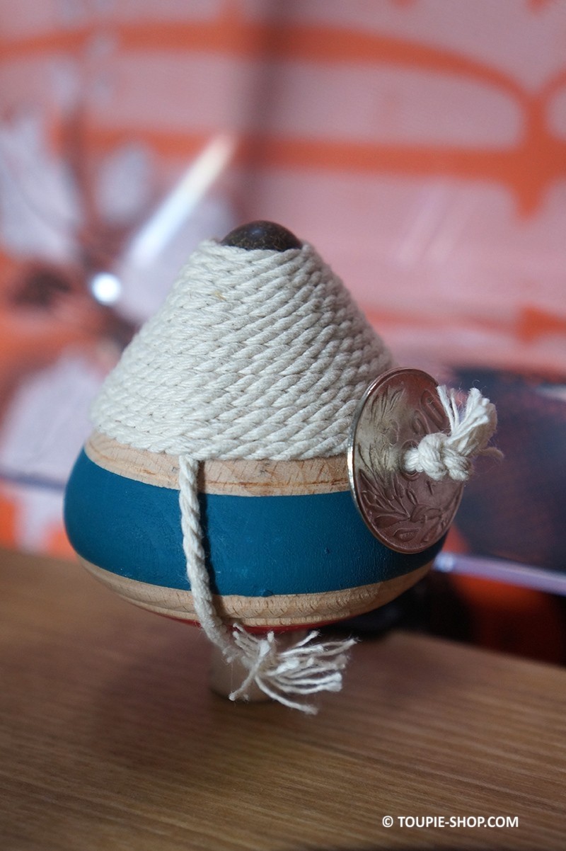 "Toupie de combat" aussi appelée "Toupie de rue" ou toupie avec ficelle, ces jouets en bois de hêtre sont difficiles à lancer.