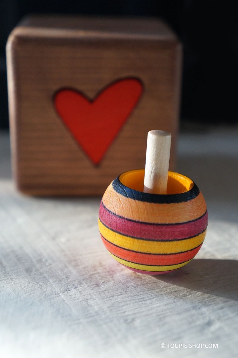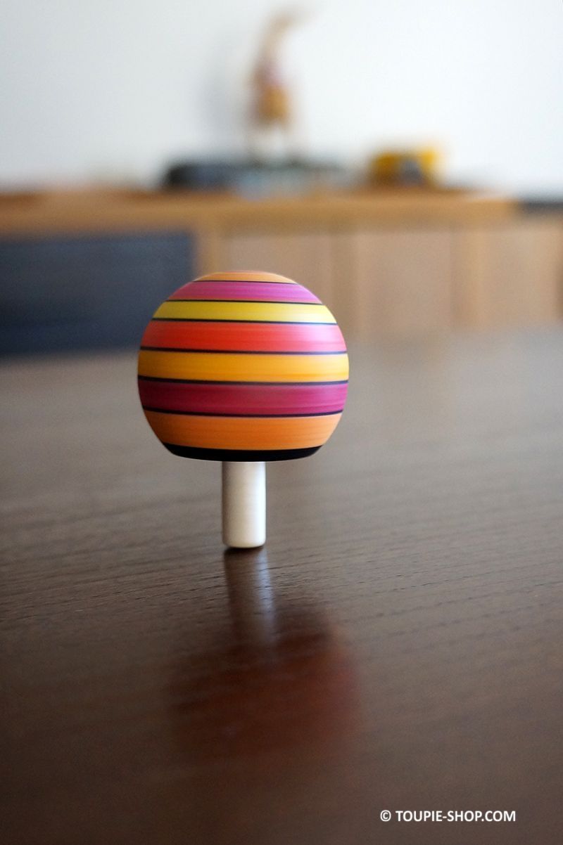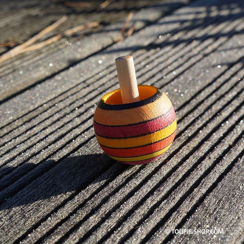 LANCER : Jeux de fille ou de garçon, cette toupie en bois originale est autant une toupie pour enfant que des jeux pour adulte à lancer à 2 doigts assez fort pour que ce jouet en bois d’érable réussisse son effet. Fabriqué en Europe, chaque modèle de toupie Tippe-Top est unique, ce jeu en bois artisanal est disponible en 5 couleurs dégradées au choix ci-dessus.