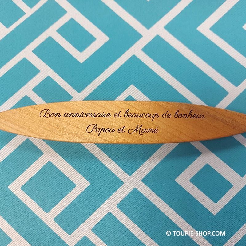 De fabrication artisanale, ces jeux de collection sont charismatiques : à la physique de l’anagyre s’ajoute votre message. Cette toupie en bois avec l’inscription de votre choix est une pièce unique made in France, un cadeau personnalisé original et local !