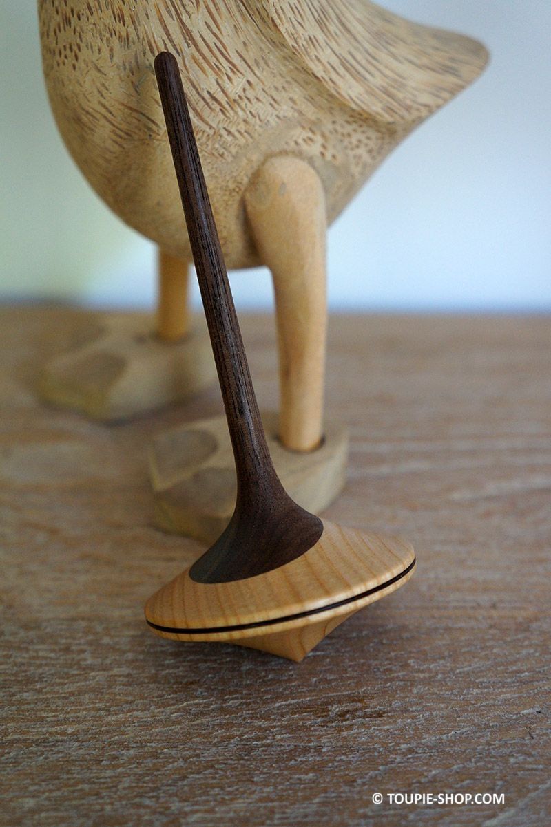 Cette toupie design avec son œil excentré en bois de Noyer nous fait penser au Panda !