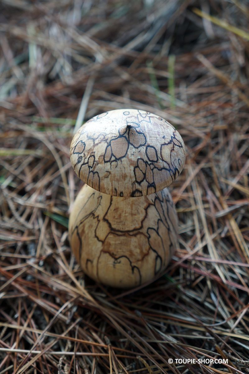 A L'ARRÊT : Bolet (ou Cèpe) en bois ! Fruit de l’artisanat local, c’est un concept d’un artisan tourneur sur bois : la Toupie Champignon se confond dans son support. Ce jeu de toupie fabriqué en France comprend un socle et une toupie en bois échauffé qui s’y intègre parfaitement, une idée de cadeau pour Noël, jeux de collection pour adulte. De fabrication artisanale et locale, chaque Toupie Bolet est une pièce unique.