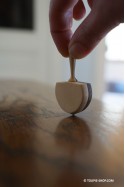 A L’ARRÊT : La toupie Pile ou Face est composée de bois d’érable (partie claire) et de noyer (partie foncée). De fabrication artisanale, chaque pièce est unique, fait-main en France.