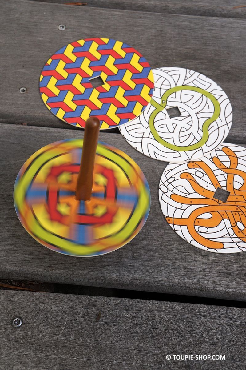 LANCER : Quelle activité faire avec ses enfants ? Jeux de coloriage, labyrinthe et toupie, vous aurez le choix, expérimentez différentes combinaisons de couleurs, jouez avec les contrastes. Avec une forme plane et une longue tige, c’est une toupie à main, frottez la tige entre vos mains pour lancer la toupie.