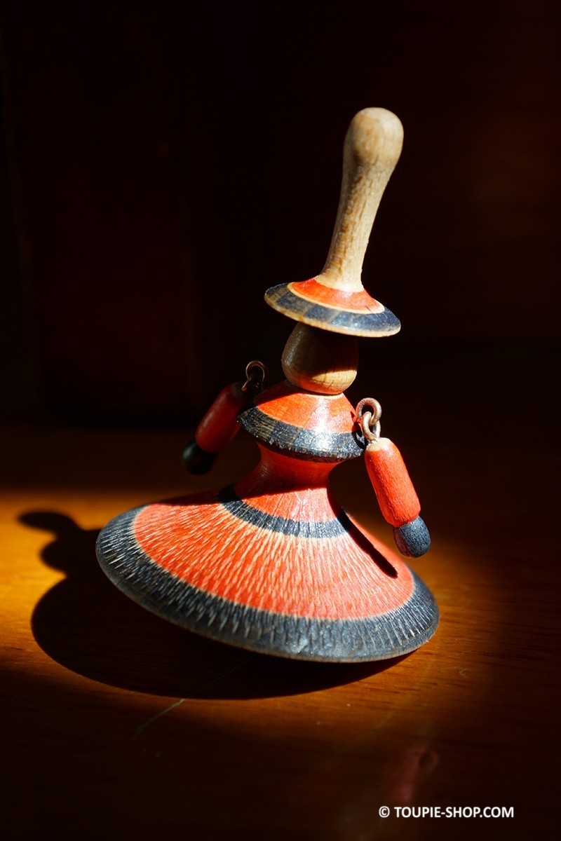 Cette toupie danseuse, jeu en bois artisanal est un jouet de collection made in France.